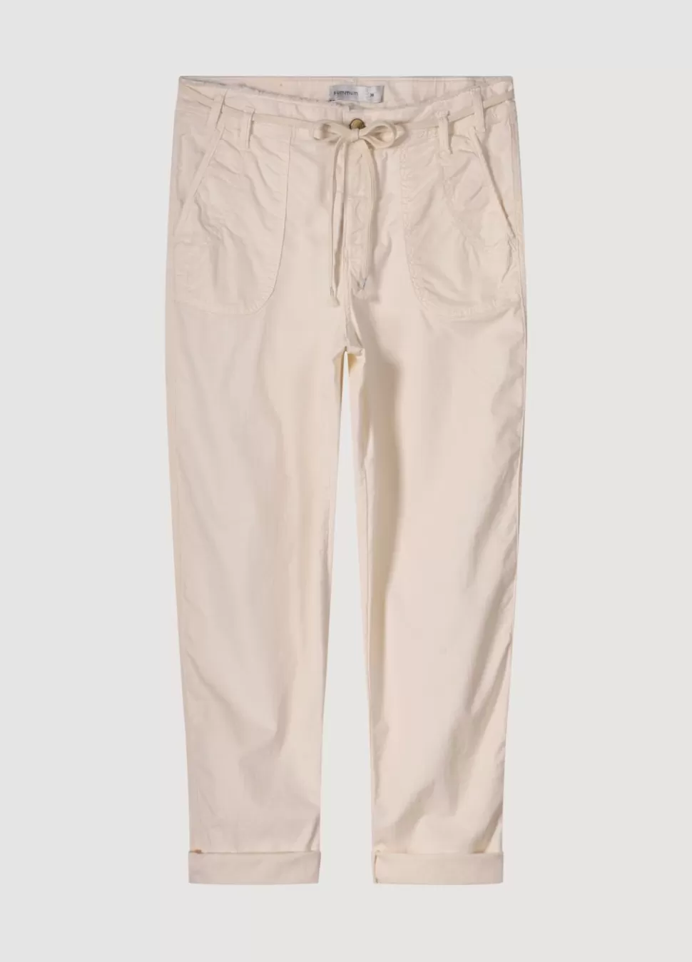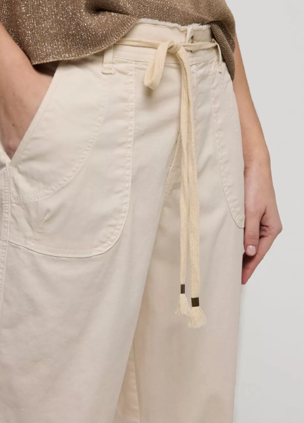Barrel Fit Broek In Een Soepelvallende Stof En Koord In De Taille. De Broek Heeft Opgestikte Zakken Voor En Klepzakken Achter.