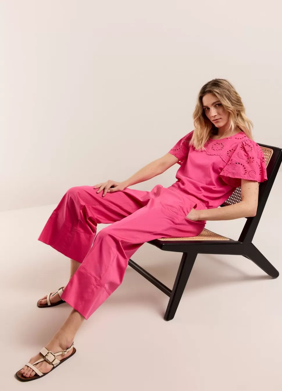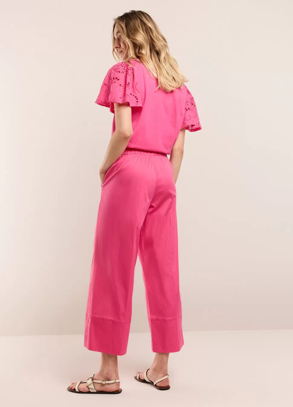 Broek Met 7/8E Rechte Pijpen En Brede Zoom. De Broek Heeft Een Elastische Tailleband Aan De Achterkant. • Elastische T…