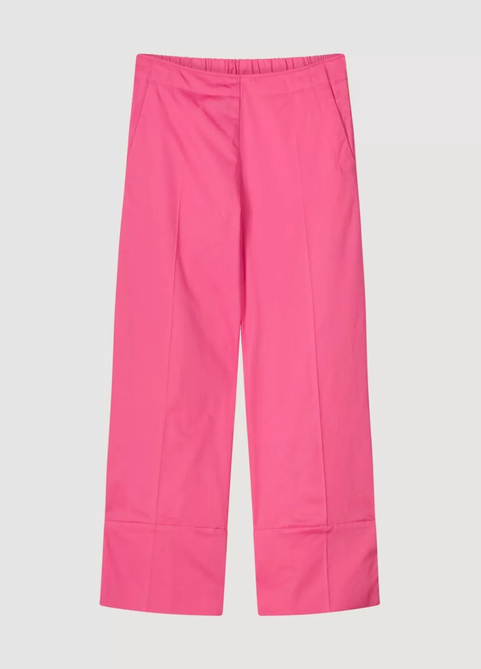 Broek Met 7/8E Rechte Pijpen En Brede Zoom. De Broek Heeft Een Elastische Tailleband Aan De Achterkant.