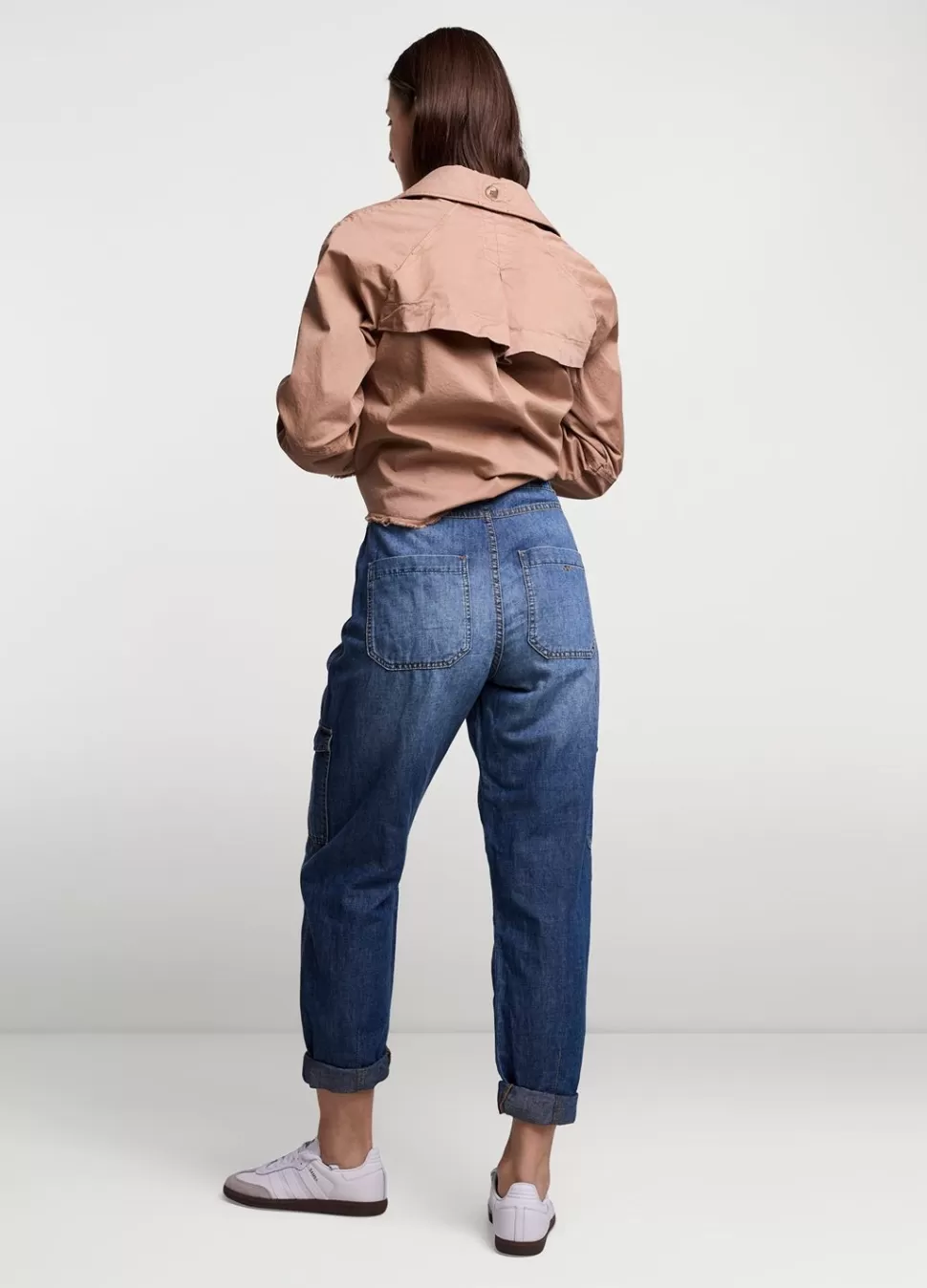 Denim Cargobroek In Een Soepele, Lichte Non-Stretch Denim Kwaliteit Door De Mix Van Katoen En Linnen. De Broek Heeft Een Loose Fit En Screw Off Knopen, Die Bij Recycling Het Proces Verduurzamen.