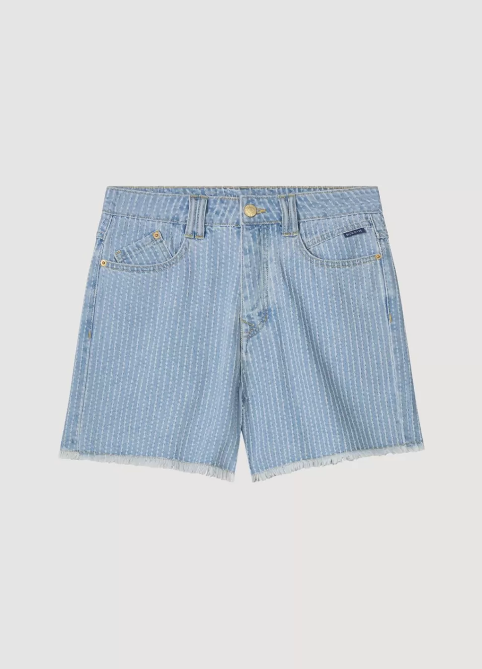 Denim Short Van 100% Katoen In Een Fijne Twill Denim Met Een Speciaal Lasergesneden Streepontwerp. De Korte Broekspijpen Hebben Een Gerafelde Afwerking.