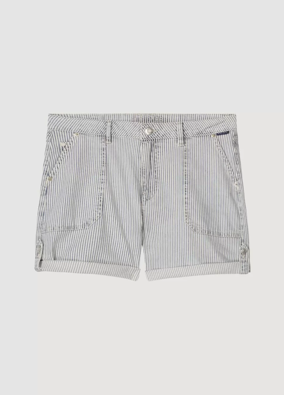 Denim Shorts In Een Indigo Streepkwaliteit Met Een Lichte Stretch. Deze Korte Broek Is Voorzien Van Opgestikte Zakken Aan De Voorkant En Een Gulp Met Rits.