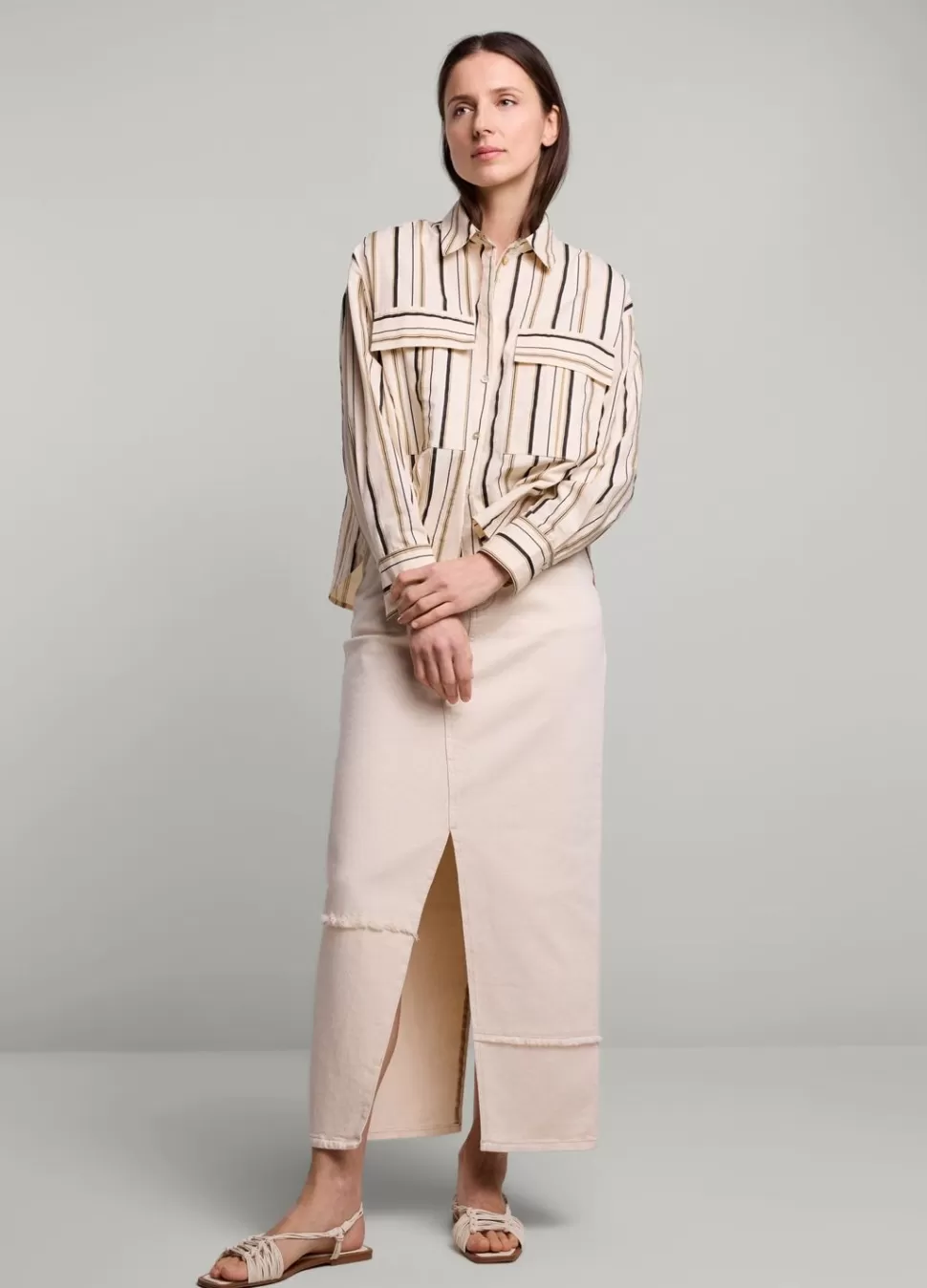 Gestreepte Blouse Van Katoen Met Een Ruime Pasvorm. De Blouse Heeft Twee Grote Klepzakken Op De Borst.