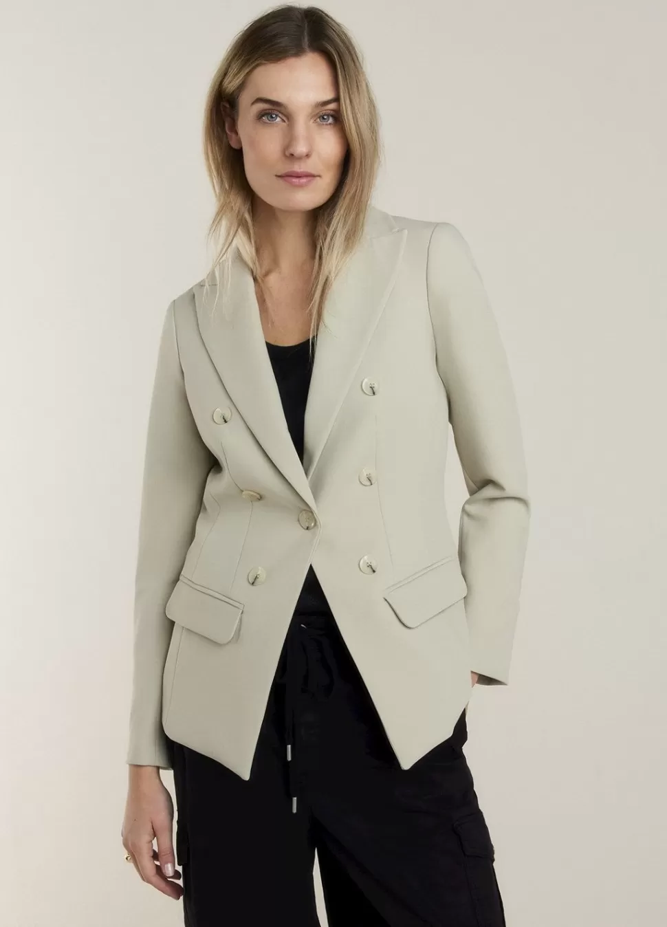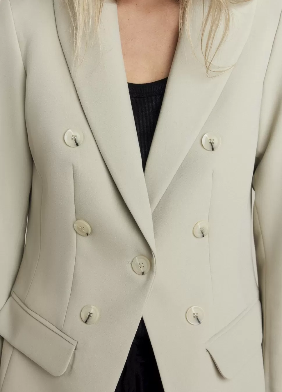 De Soft Foam Blazer Heeft Een Getailleerde Pasvorm En Een Schuine Knoopsluiting. Op Het Voorpand Zitten Twee Paspelzakken En Ton-Sur-Ton Accentknopen.