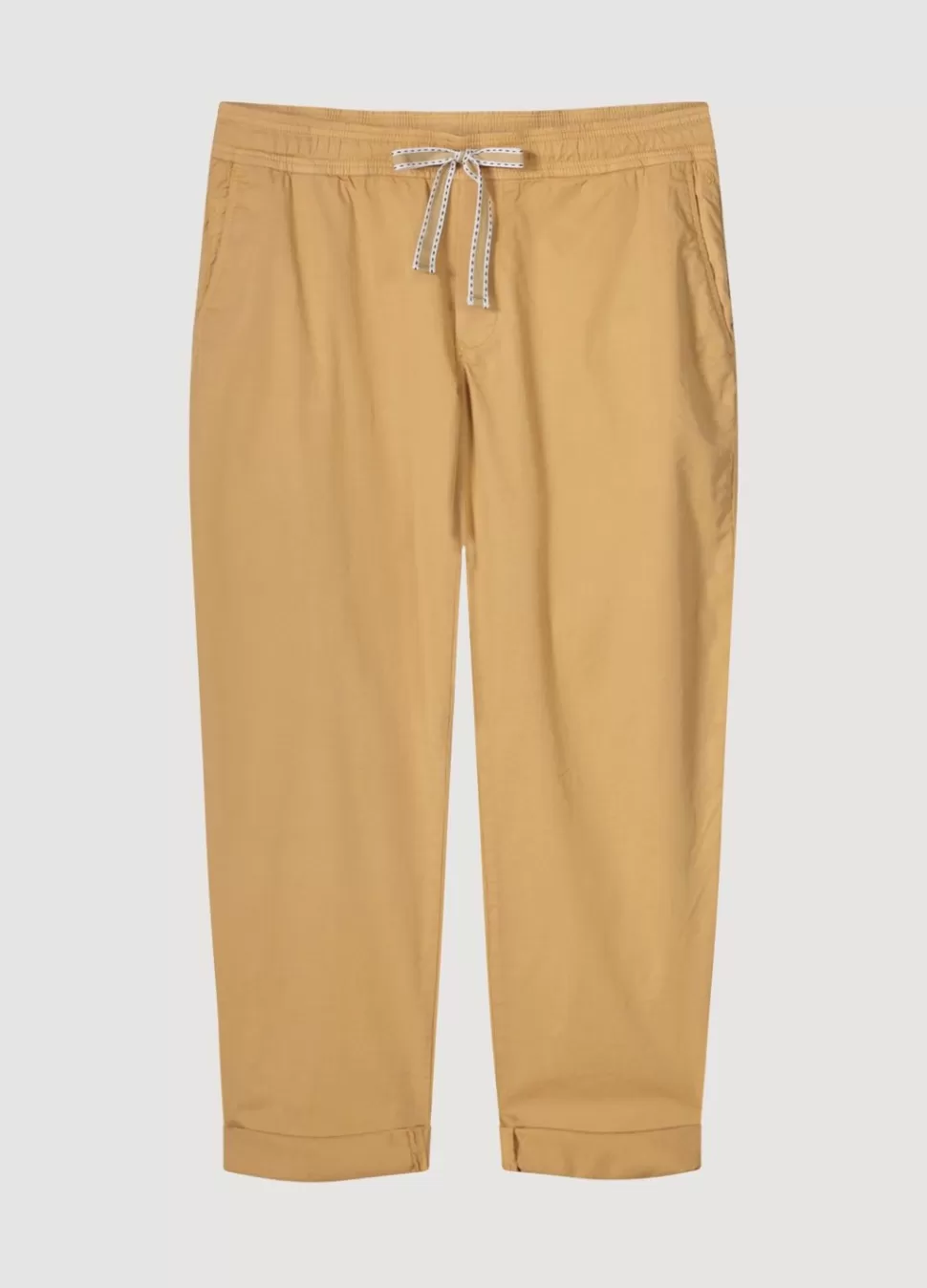 Smal Toelopende Broek Met Een Relaxte Fit, Gemaakt Van Een Zachte Stretch Stof. De Broek Heeft Opgestikte Zakken Achter En Een Elastische Tailleband Met Een Trekkoord.