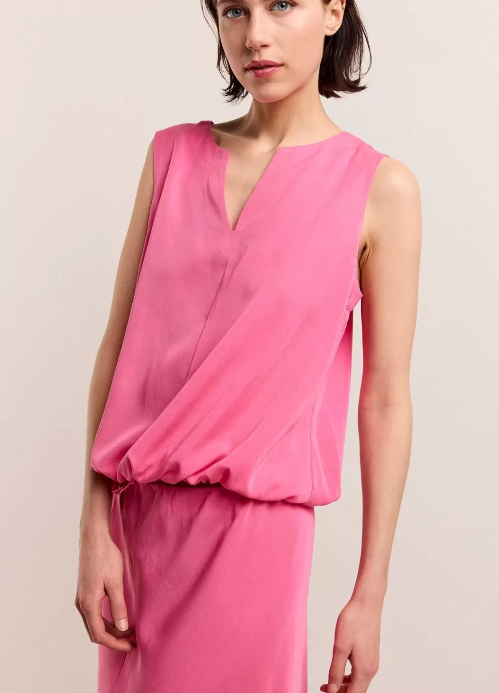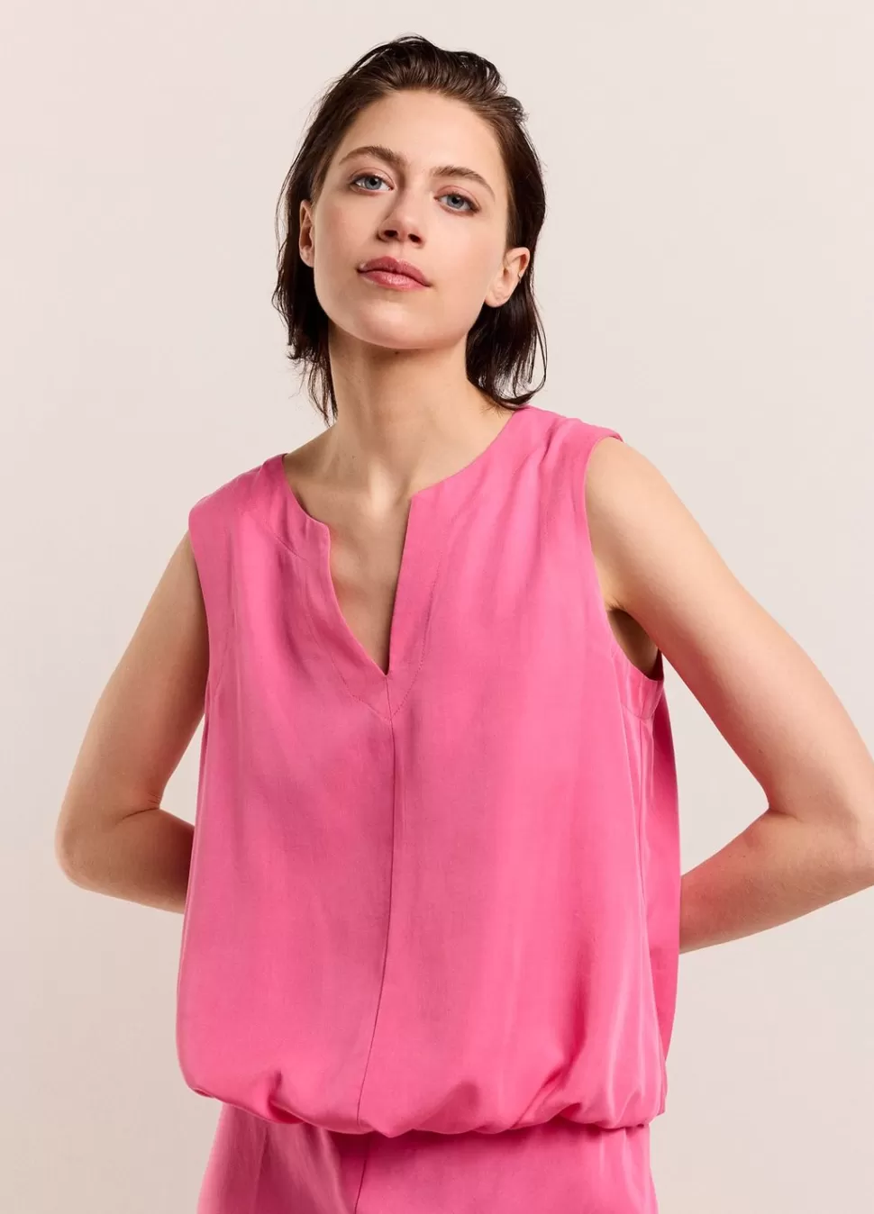 Mouwloze Top Met Ronde Hals En V-Split. De Zoom Aan De Onderkant Is Elastisch En Voorzien Van Een Stoffen Striksluiting …
