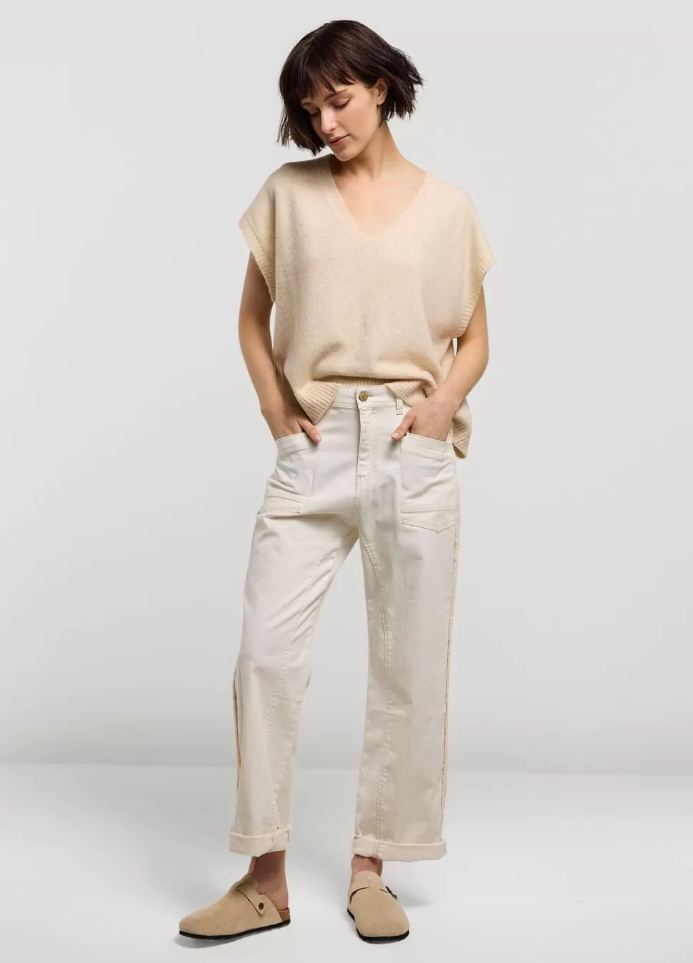 Zachte Oversized Trui In Gemêleerd Garen. De Mouwloze Trui Heeft Een Diepe V-Hals En Wijde Armsgaten.