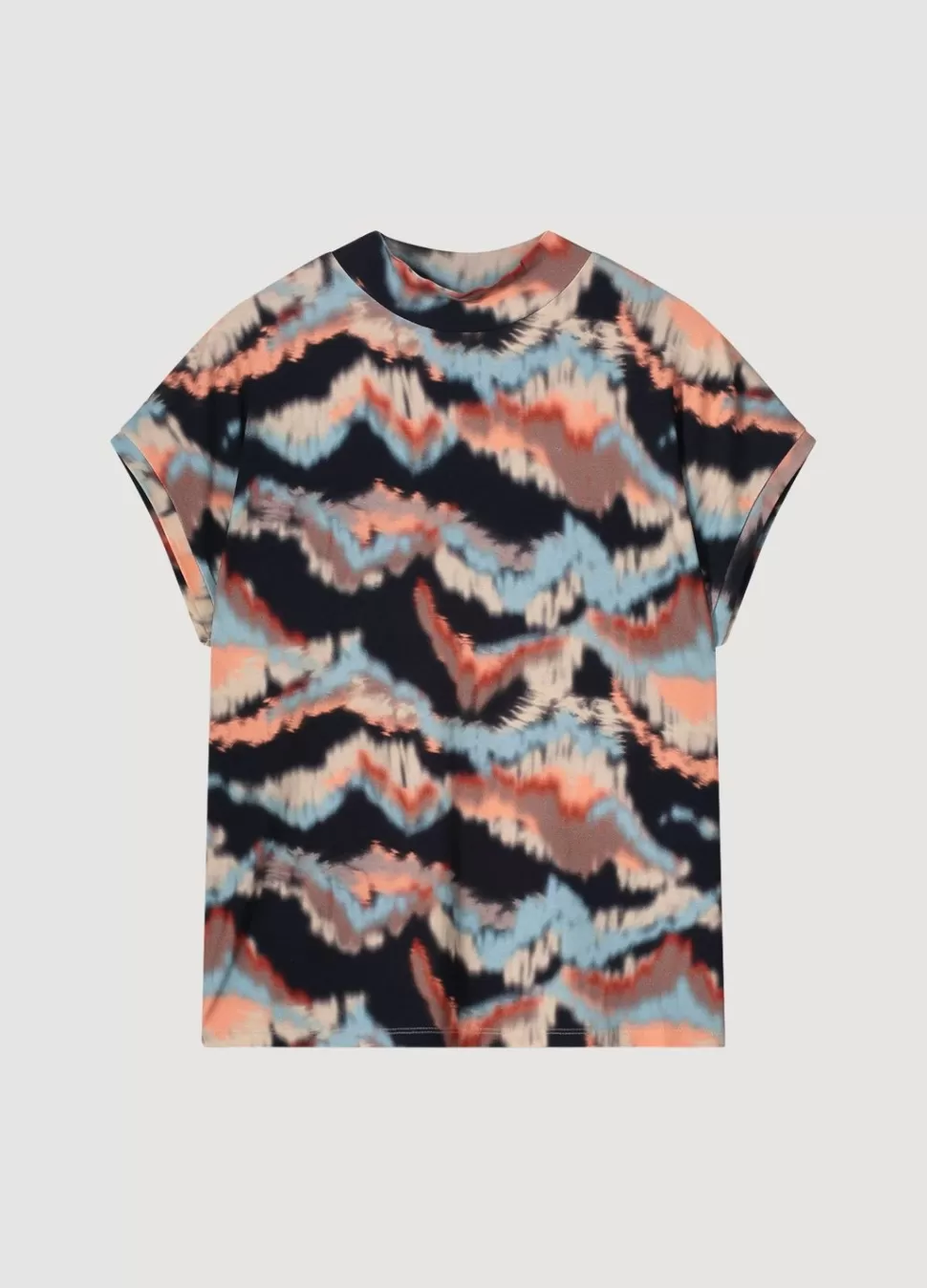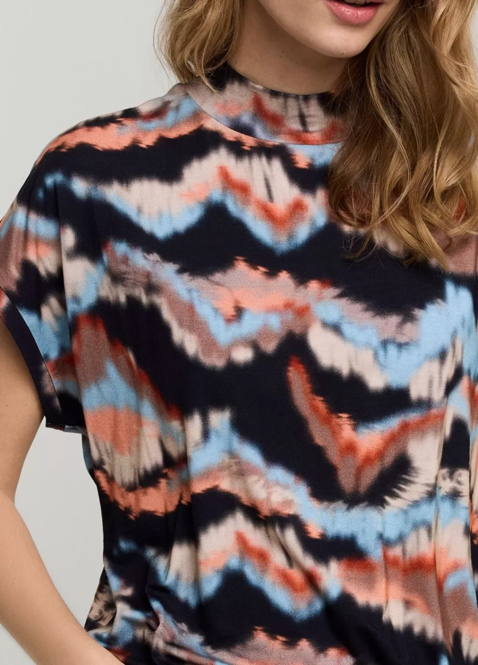 Top Met Lage Colkraag, Gemaakt Van Multicolor Zachte Viscose Jersey Kwaliteit. De Top Heeft Een Normale Pasvorm En Aangeknipte Korte Mouwtjes