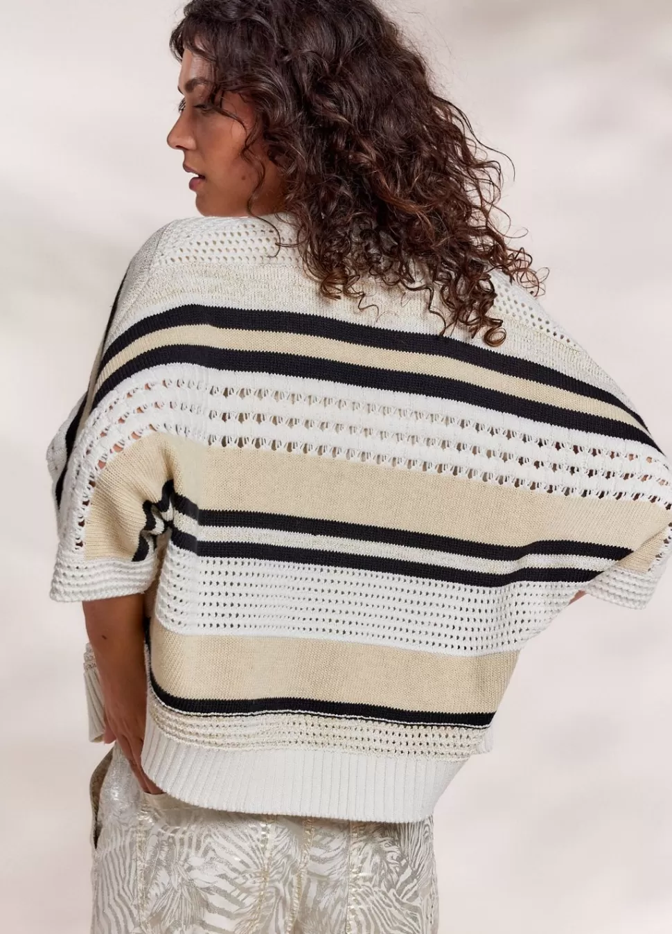 Open Vest Met Korte Mouwen, Gebreid In Meerdere Garens En Steken. Het Vest Heeft Een Oversized Fit En Verlaagde Mouwen.