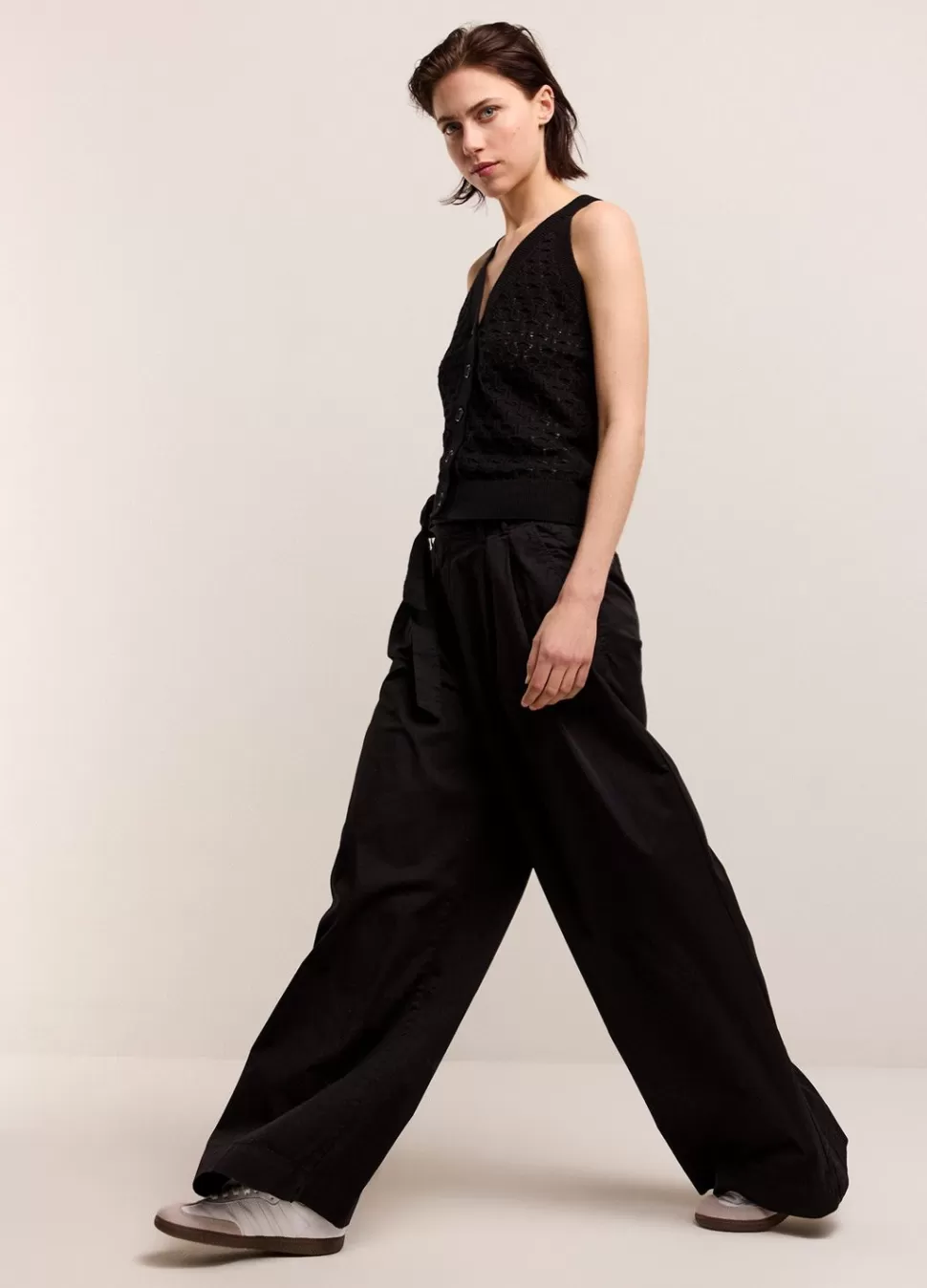 Palazzo Broek Met Hoge Taille In Een Lichtgewicht Stretch Twill Stof. De Broek Heeft Een Stoffen Ceintuur In De Taille En Steekzakken Voor.