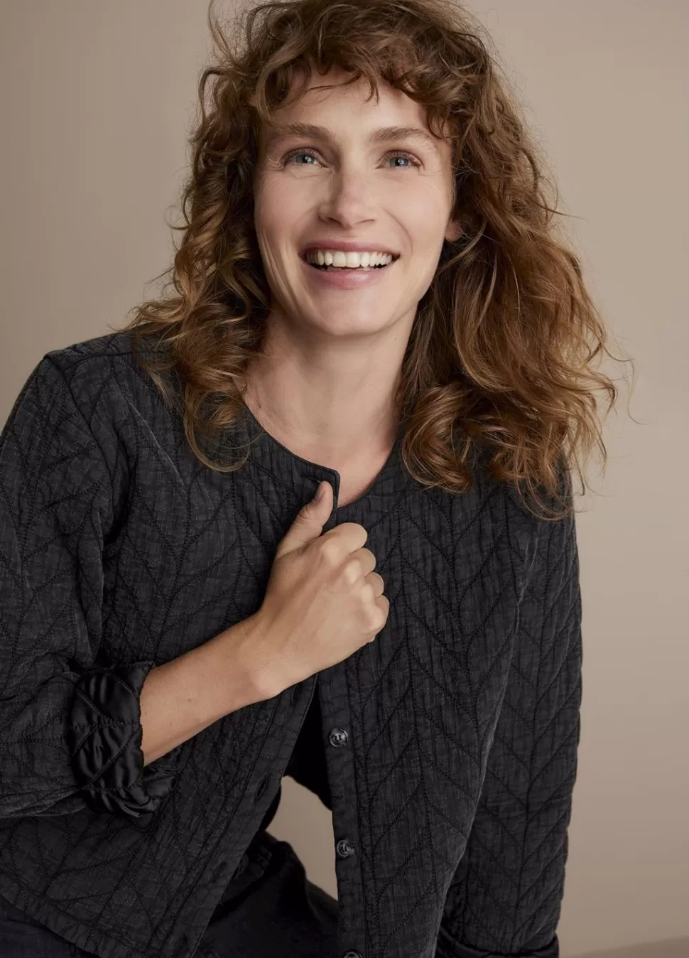 This Quilted Jacket Has A Standard Fit And Is Lightly Padded. The Quilted Look Is Created By Stitching In A Herringbone Pattern. The Washed Look, Flat Round Neck And Folded Cuffs Give This Jacket A Cool Look. The Small Flap Pockets At The Bottom And Small Buttoned Closure Give The Jacket A Sophisticated Finish.