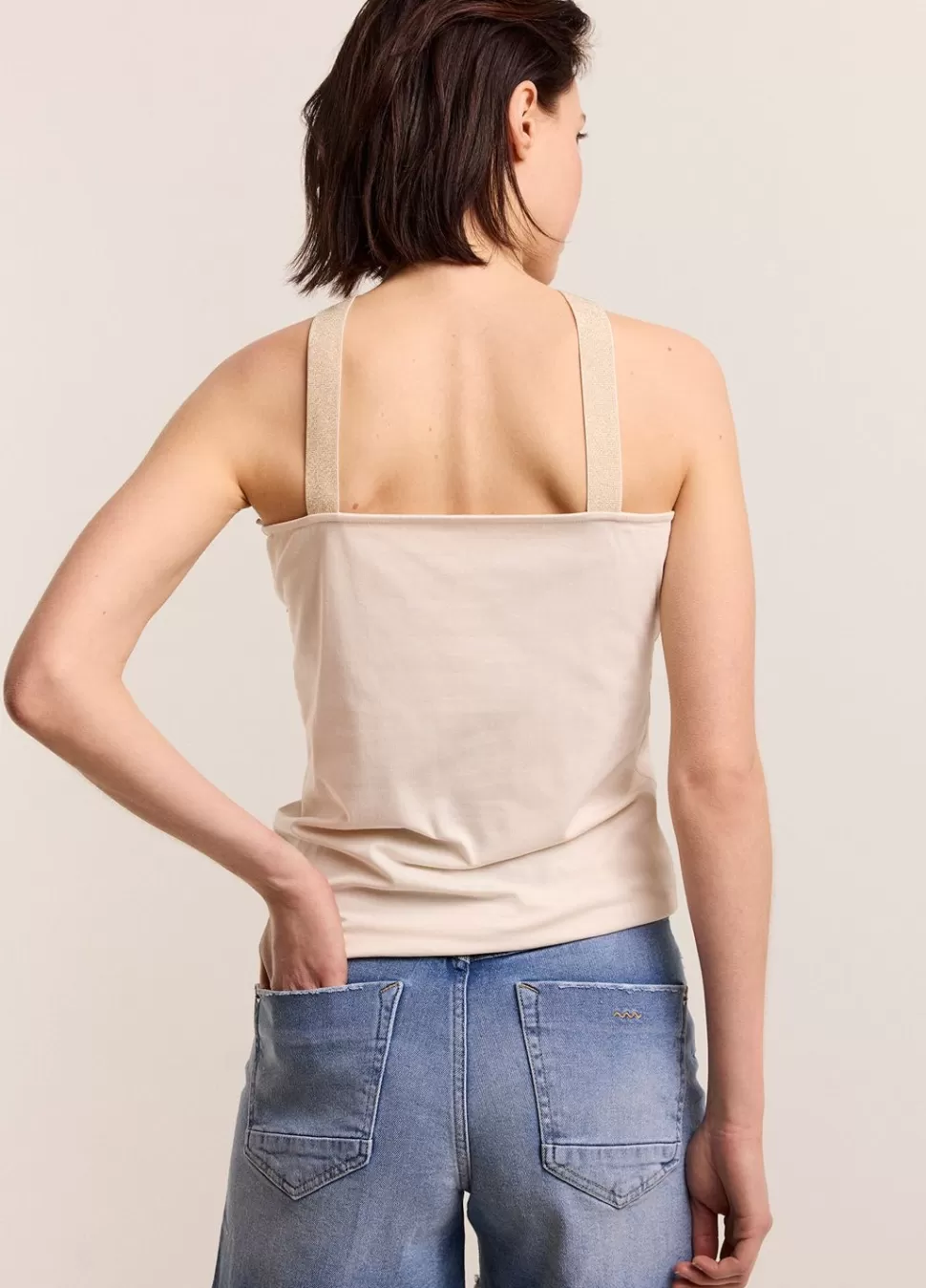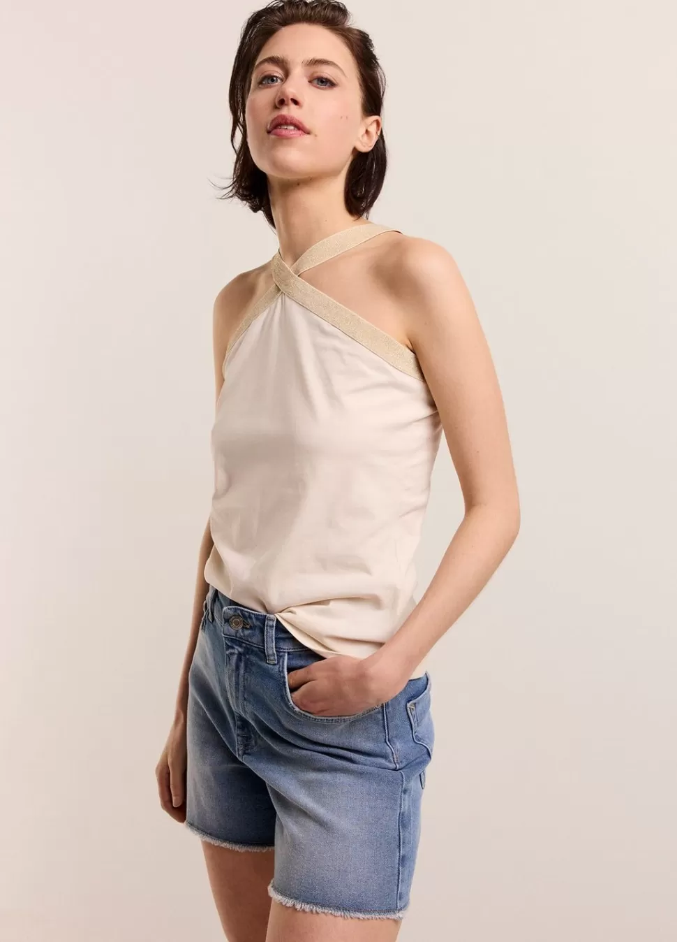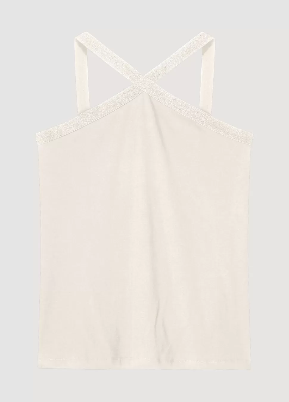 Singlet Met Gekruiste Halslijn Afgewerkt Met Glitterelastiek. De Top Heeft Een Aangesloten Pasvorm En Is Gemaakt Van Biologisch Jerseykatoen.
