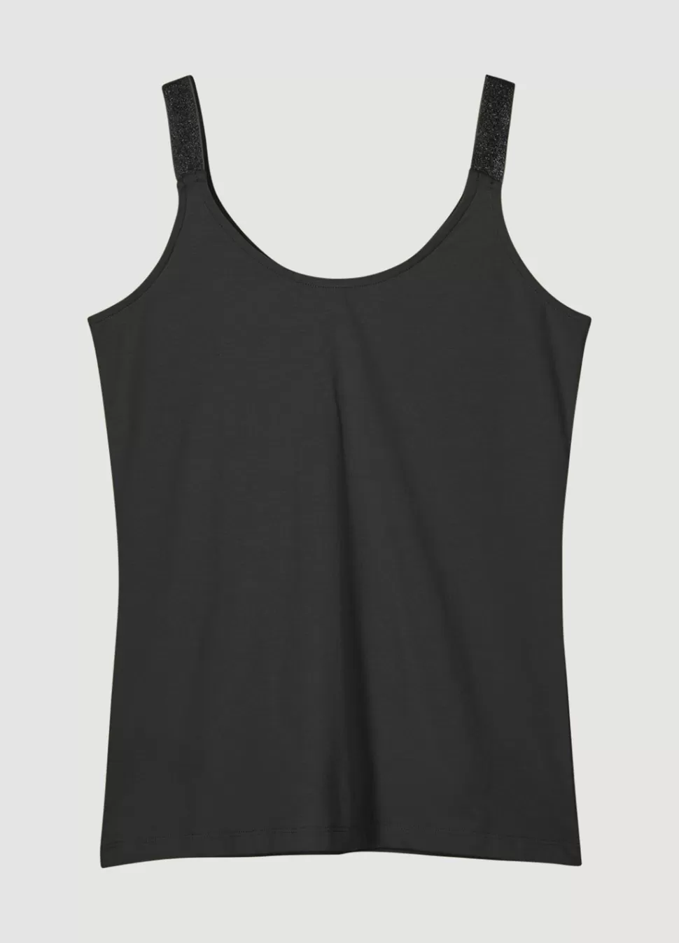 Klassiek Hemdje Met Glitterbandjes Dat Aan Beide Kanten Gedragen Kan Worden. Het Singlet Is Gemaakt Van Stretchkatoen En…