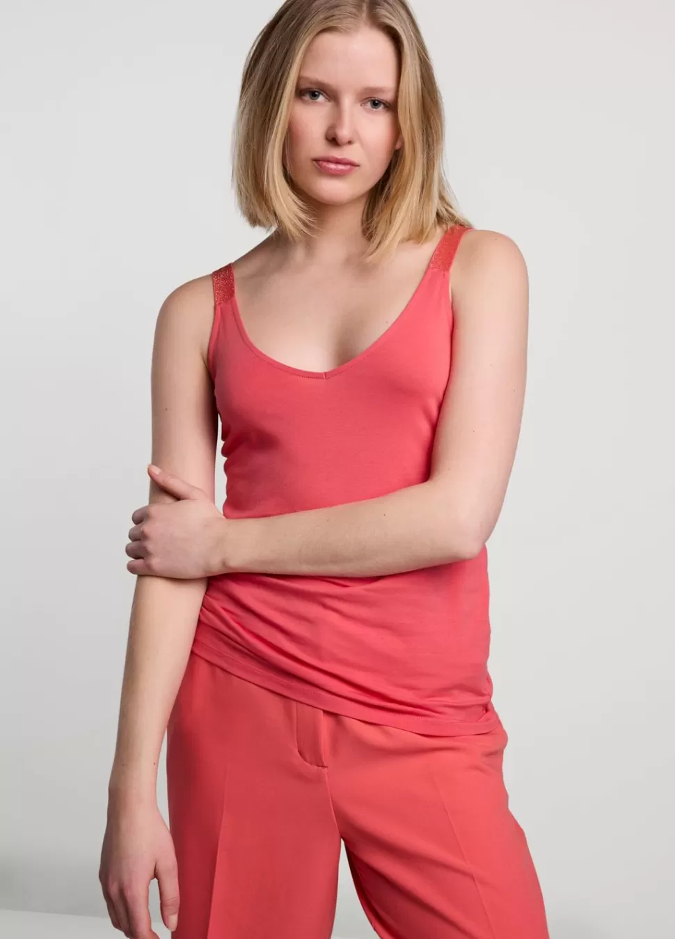 Klassiek Hemdje Met Glitterbandjes Dat Aan Beide Kanten Gedragen Kan Worden. Het Singlet Is Gemaakt Van Stretchkatoen En…
