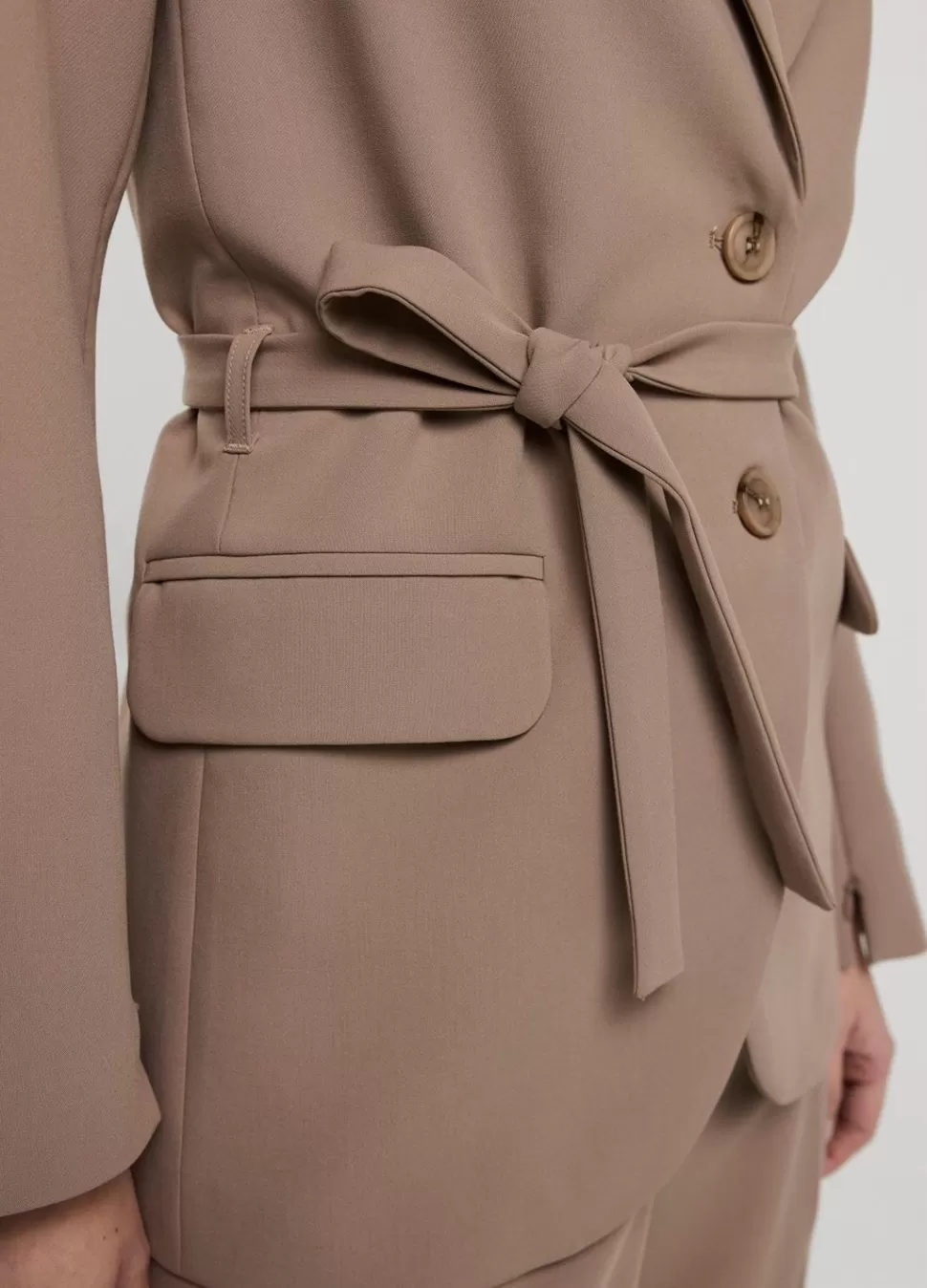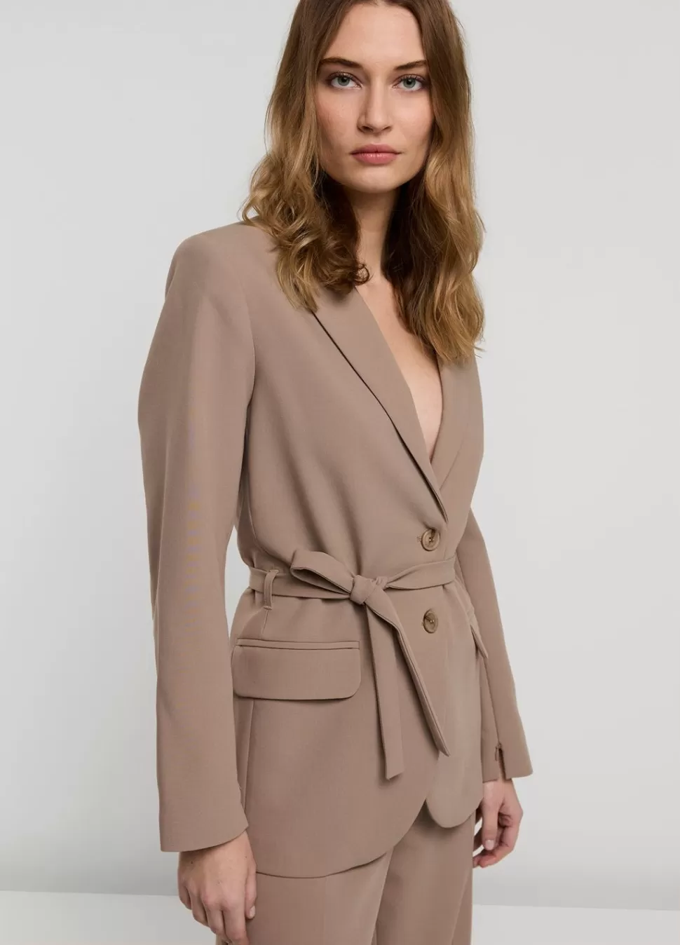 Boyfriend Blazer In Soft Foam Stof Met Ceintuur In De Taille En Klepzakken Op Het Voorpand. Het Jasje Heeft Blinde Ritse…