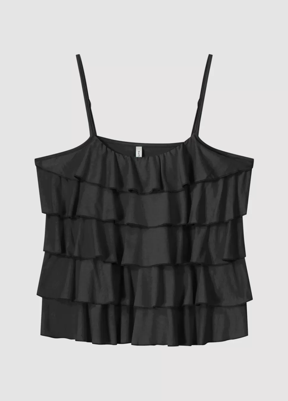 Spaghettitop Met Ruches Aan De Voorkant, Gemaakt Van Een Soepelvallende Viscose Jersey Stof. De Top Heeft Een Relaxte Pasvorm Met Verstelbare Spaghettibandjes.