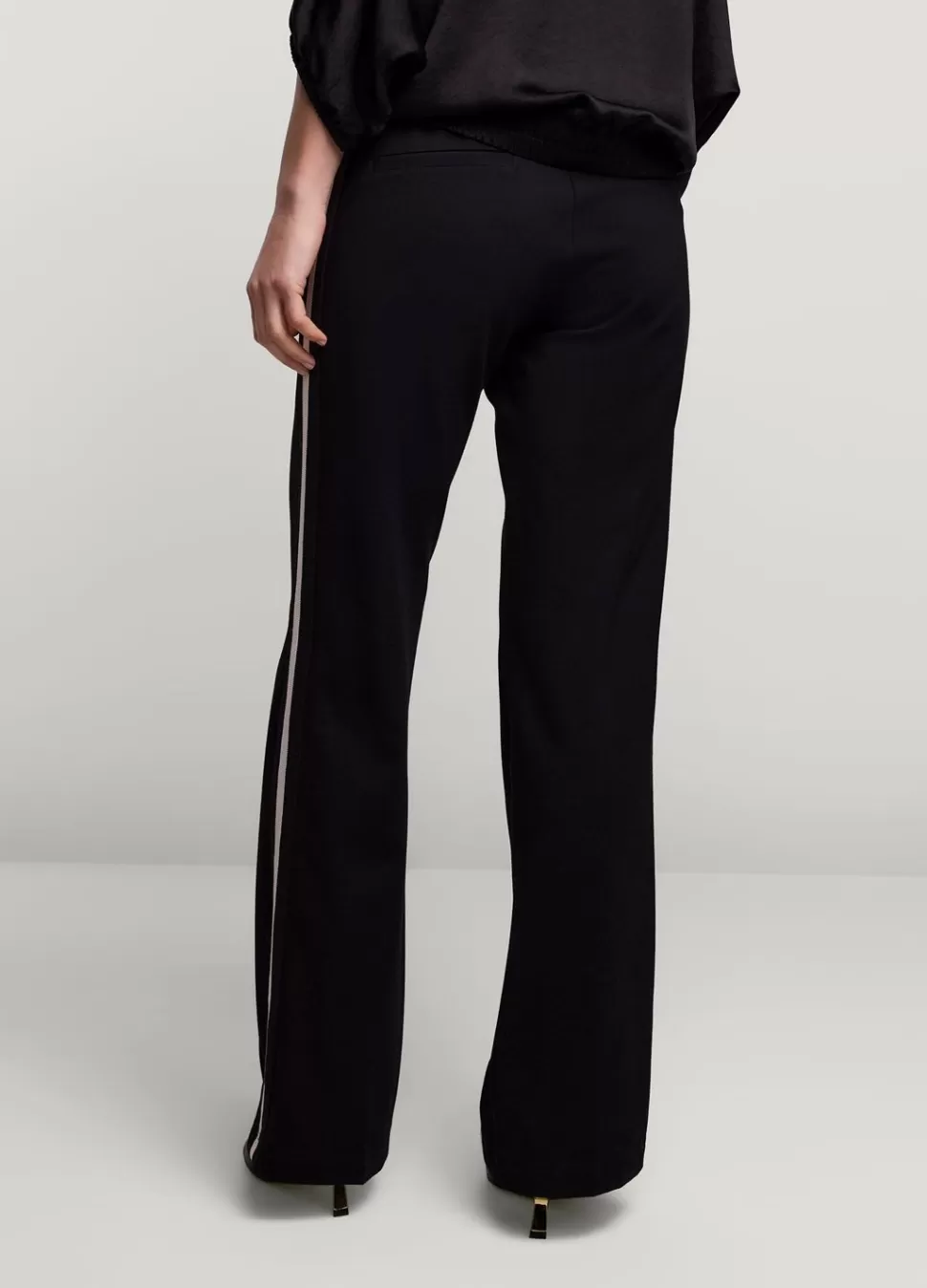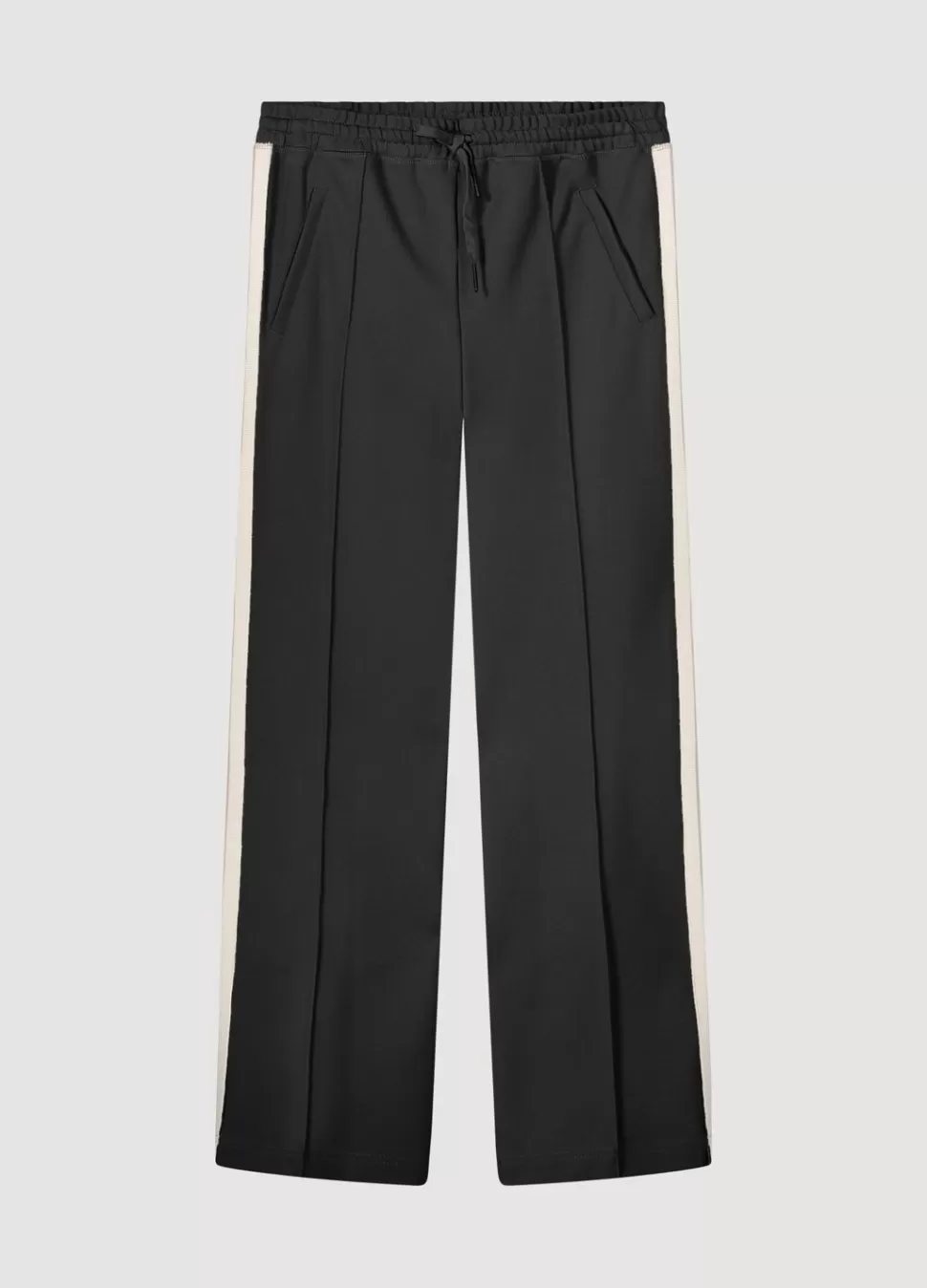Sportieve Broek Met Rechte Pijpen Met Een Contrasterende Tape Op De Zijnaad. De Broek Heeft Een Elastische Taille Met Koord En Schuine Strookzakken Met Rits Voor.