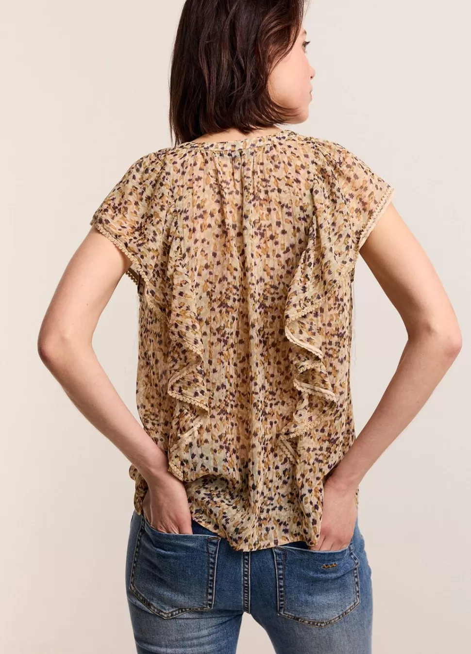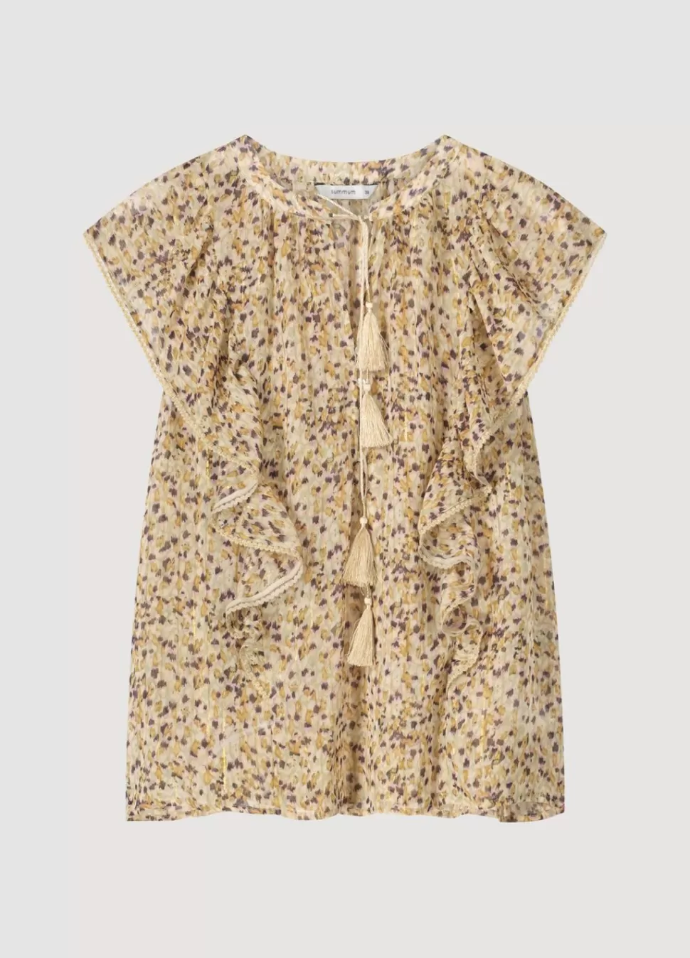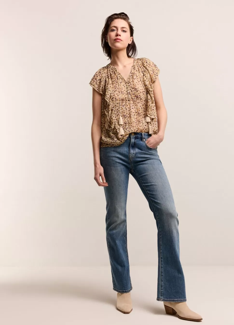 Top Met Ruches Vanaf De Schouderlijn Over Het Voorpand In Een Flatterende V-Vorm. De Top Is Gemaakt Van Een Overal Bedrukte, Soepelvallende Stof.