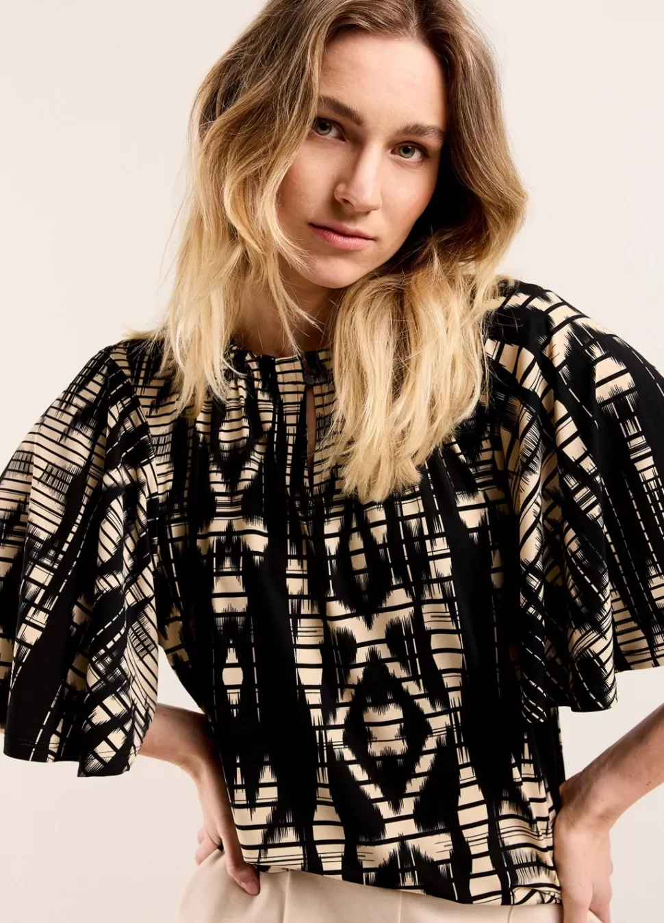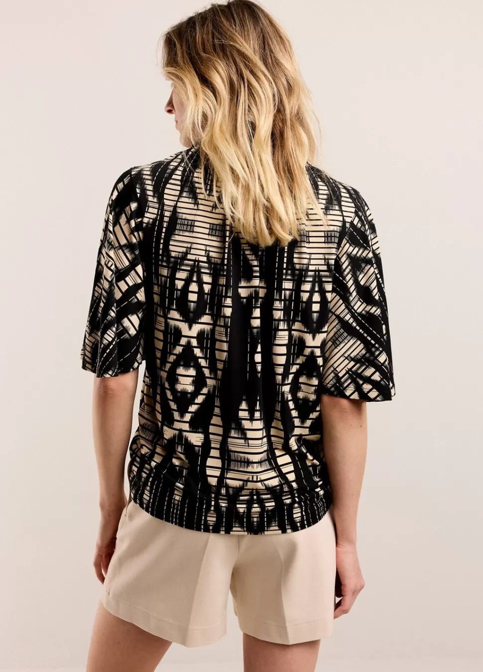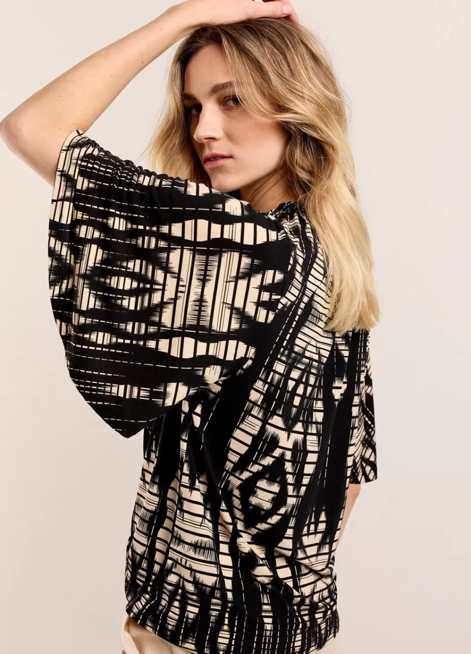 Top Met Wijde Korte Mouwen En Opstaand Kraagje Met Elastiek. De Top Is Gemaakt Van Een Zachte, Rekbare Jersey Kwaliteit Stof En Is Allover Bedrukt. • Relaxte Pasvorm