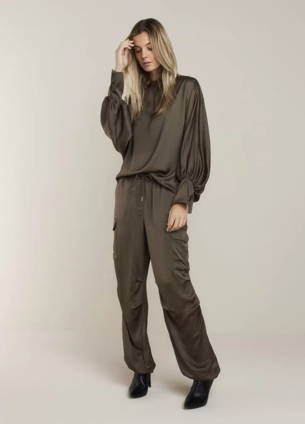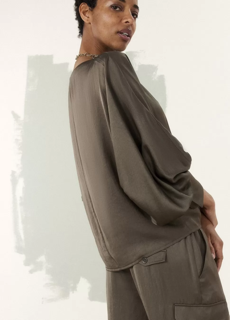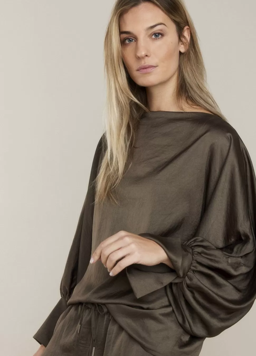 Top In Een Soepelvallende Silky Touch Stof Met Lange Vleermuismouwen. De Top Heeft Een Rechte Fit, Lichte Boothals En Br…