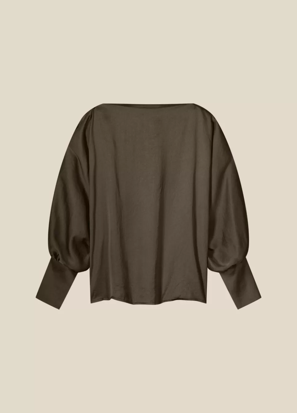Top In Een Soepelvallende Silky Touch Stof Met Lange Vleermuismouwen. De Top Heeft Een Rechte Fit, Lichte Boothals En Brede Boorden Voor Een Blousend Effect.